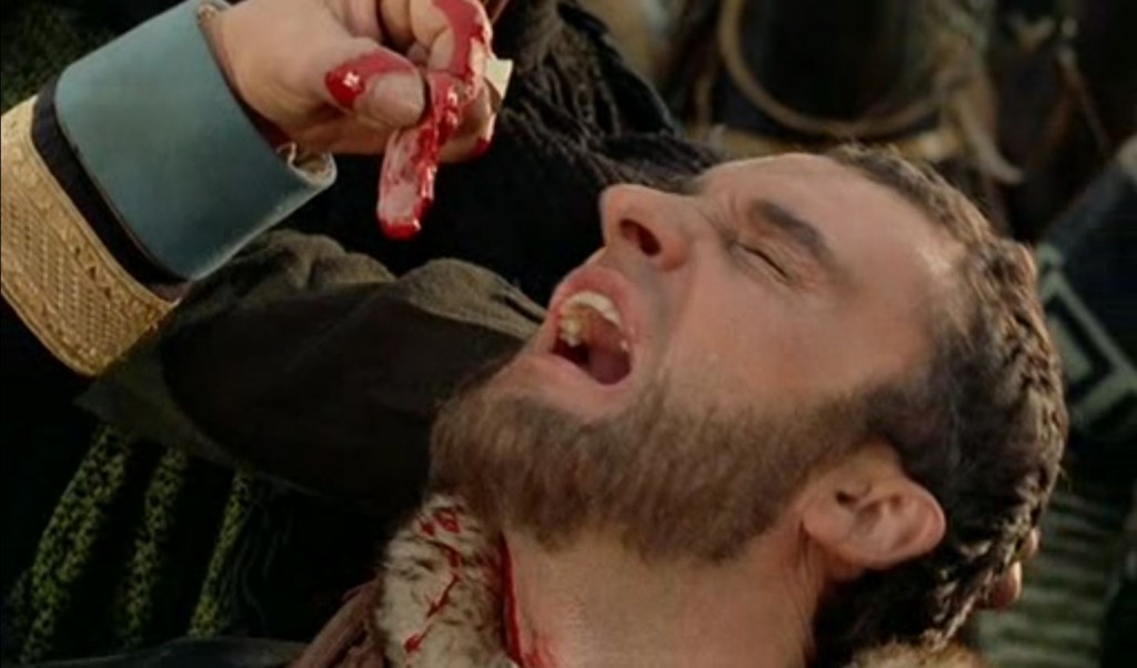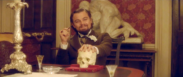 Fotograma de la película Django desencadenado que realiza una cita a Hamlet y que enmarca un discurso determinista.