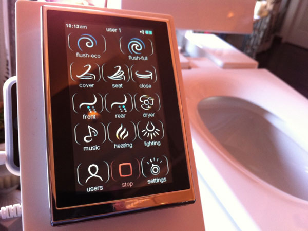 Para empezar, es un “dos en uno”, un water que lleva integrado un bidé, o viceversa. El primero cuenta con un sistema de rociado, presión y temperatura del agua, además de un secador para eliminar cualquier humedad una vez usado. (jajajajajaja…..que éxito va a tener esto tío…chorrito aire caliente o frío a gusto del consumidor, consumidora o híbrido)