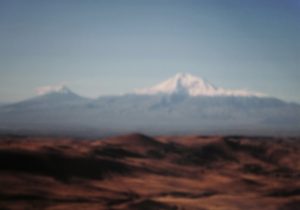Íbamos por la carretera de Yerevan y veíamos el monte Ararat. Era la primera vez y saltamos de emoción en el coche. Estábamos rodeados de grandes montañas, pero aquella gran montaña a lo lejos destellaba para nosotros con su cumbre nevada, estaba llena de reminiscencias, de significados.