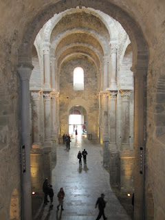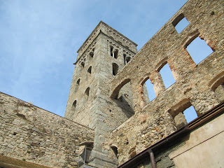 Del patio accedimos a este monasterio benedictino, cuyos orígenes se pierden en el tiempo, aunque los documentos ya hablan de una pequeña celda monástica a finales del siglo IX. No obstante el esplendor del monasterio ya es en el siglo X, cuando recibe grandes donaciones de tierra y consigue preceptos y privilegios, y se empieza a construir la iglesia que se convertirá en centro de peregrinaje. La consolidación del poder y prestigio se produce en los siglos XII y XIII.
