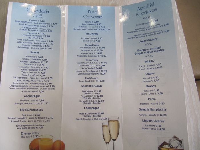 Los precios del bar son, por ejemplo, 1.2€ el expresso, 1.6€ el capuchino, 1.3€ el agua de medio litro, 1.6€ el croissant y 4.2€ el bocadillo. El restaurante sale entre 6 y 8 euros los platos, que no son gran cosa, la verdad.
