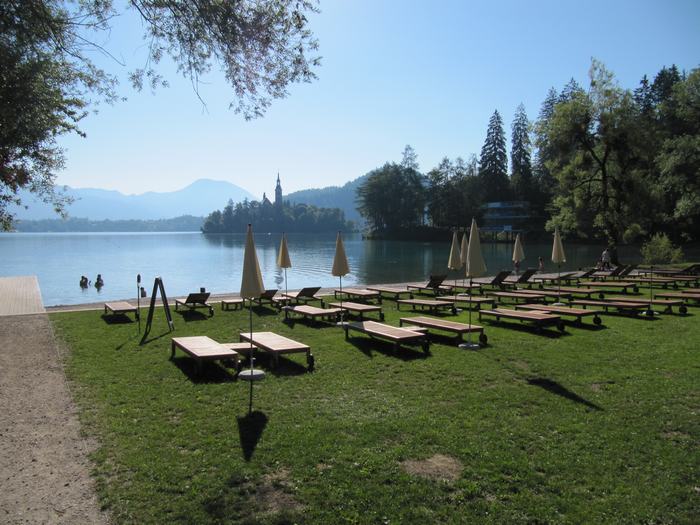 Playa: Con el precio puedes disfrutar de la playita de la foto y los accesos a barcas para la isla. Mejor aquí que en el pueblo de Bled.