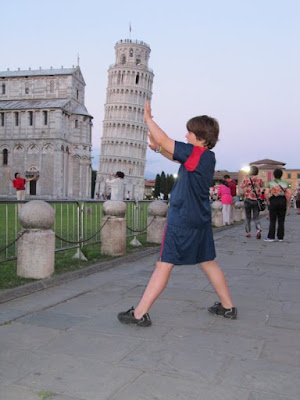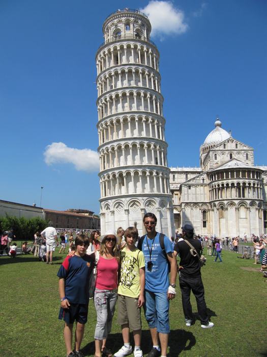 Cenamos en una pizzería muy cerca de la Torre que se llamaba trattoria Toscana, nos comemos un helado y nos estiramos un rato a ver la torre mientras suena la música de fiesta de este día de San Juan.