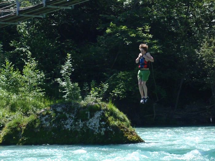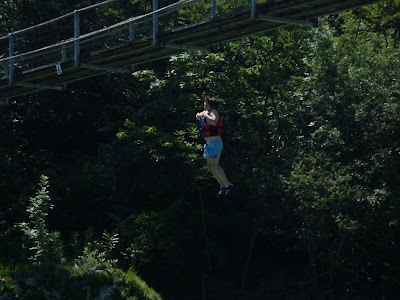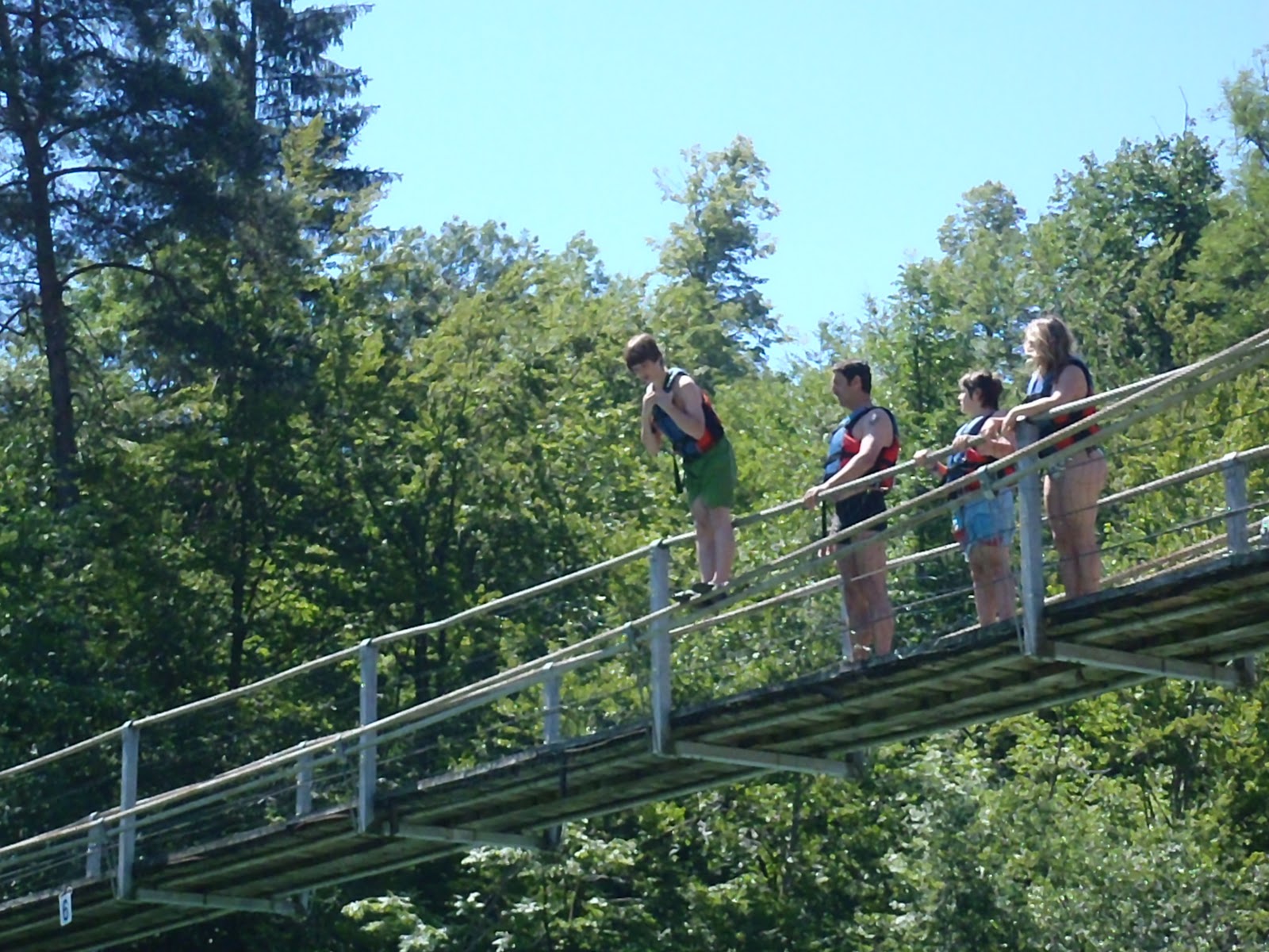 Durante el descenso hicimos un alto para tirarnos desde lo alto de un puente, a 7 metros de altura y 5 metros de profundidad en esa parte del río.