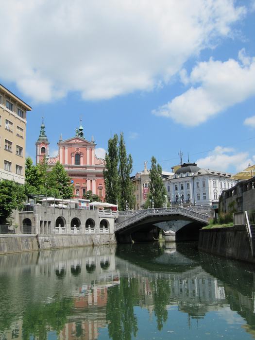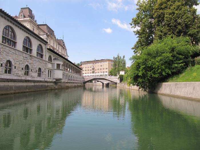 la Ljubljana de Joze Plecnik pues transformó literalmente la ciudad en el primer tercio del siglo XX. A parte de este puente triple construyó otros dos, el de los