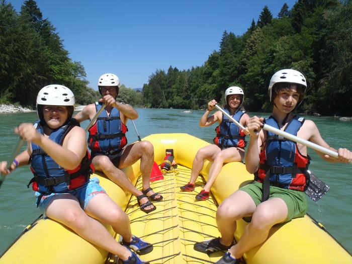 rafting en el río Sava fue lo mejor que pudimos hacer ese día de sol radiante. Bajamos por las aguas gélidas de color azul verdoso del río Sava.