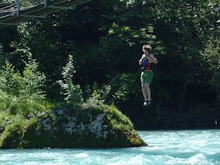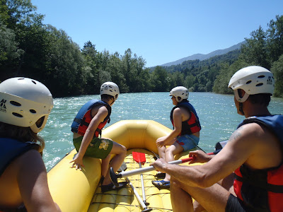 Se levanta un día estupendo para hacer rafting, así que nos dirigimos a Bled y miramos las tres agencias que lo ofrecen. Nos quedamos con una que valía 28€ por persona pero los niños tenían un 20 % y además se podía pagar con visa, cosa que en las otras dos no se podía hacer (eso sí, añadiendo un 5 %), total 106,40€.
