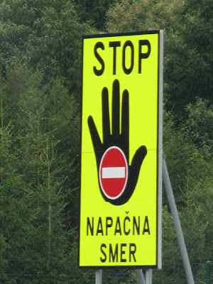 Una cosa que nos gustó de las autopistas eslovenas y de algunas croatas es esta señal para no entrar a la autopista en contra dirección, queda clara, Verdad!!