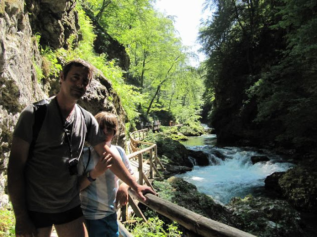 Después de comer nos vamos a visitar Blejski Vintgar o Bled Gorge, unas gargantas a 4 km de Bled que no hay que dejar de visitar si estas en la zona. La carretera es un poco estrecha para dos vehículos pero pasamos bien con la autocaravana, de hecho cuando llegamos al parking habían dos autocares. La entrada está en N 46 23.524 E 14 05.070 altura 587.