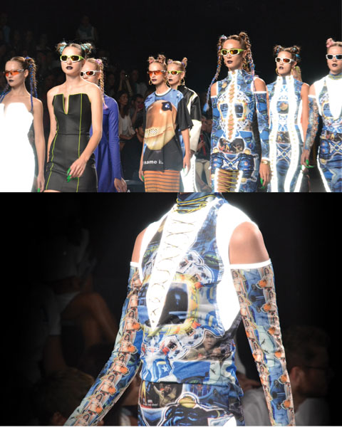 Ana Balboa y Arnau P. Bosh fueron los encargados de abrir en esta edición a la que cada vez acude menos gente y es una lástima porque es donde se pueden ver cosas interesantes. Ana Balboa mostró propuestas en tonos neutros, ocre y rojo saliendo del colorido a los que la mayoría suele acudir en estas temporadas. Sencillez en prendas de punto, inspiración en patinaje artístico. Se aventura con cortos extremos y siluetas muy ajustadas que contrastan con inexsistentes escotes. En total contraposición Arnau aparece con prendas que nos trasladan a los noventa. Riñoneras y oro como complementos en piezas amplias muy hip hop, de coloridos amarillos, naranjas y rojos . Pero como gran protagonista el tejido denim del que ya advertía el diseñador.