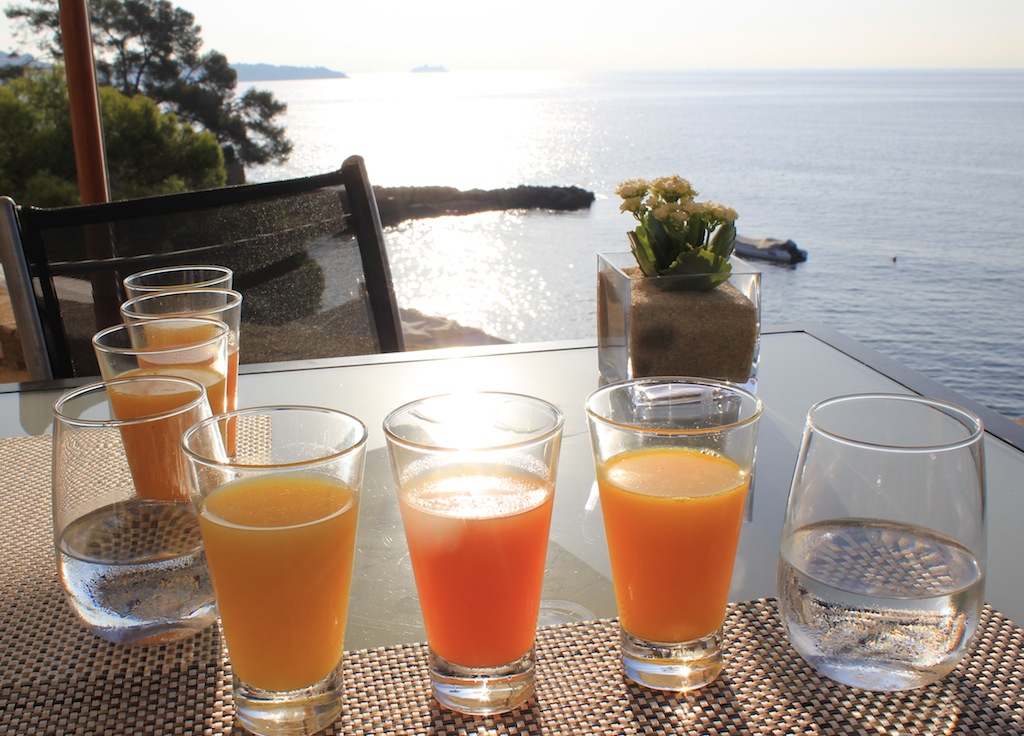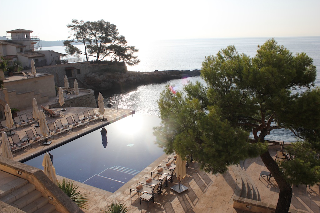 Sentada frente a la piscina infinita, que se funde con el turquesa del Mediterráneo; acompañada por el crepitar de los pinos, el rumor de las olas y Frank Sinatra, empieza el espectáculo.