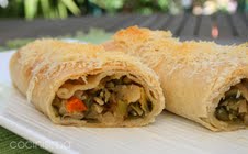 Colocamos la verdura encima de las placas del strudel y dejamos un margen de 2 cm a los bordes.