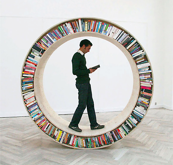 El primero de la lista es David García Studio que con su Archive Series hizo una exposición entera explorando la relación del hombre con los libros. Fruto de esto nació la icónica Circular Walking Bookshelf, una estantería hecha en madera, totalmente circular, que se puede trasladar con un simple giro y además usar como asiento de lectura gracias a su forma curva que se adapta a la espalda. Eso sí, con un buen cojín.