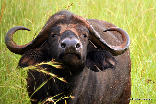 Tras pasar unos días en Kidepo, nos dirigimos al sur hacia el Parque Nacional Murchison Falls, donde pudimos disfrutar de la fauna clásica africana. Leones, jirafas, antílopes, monos, facoceros, búfalos, cebras, hipopótamos y gran cantidad de pájaros, incluyendo uno muy especial, el Pico Zapato. A este último no puede fotografiarlo bien por la distancia, pero hubo más suerte con otros como este búfalo.