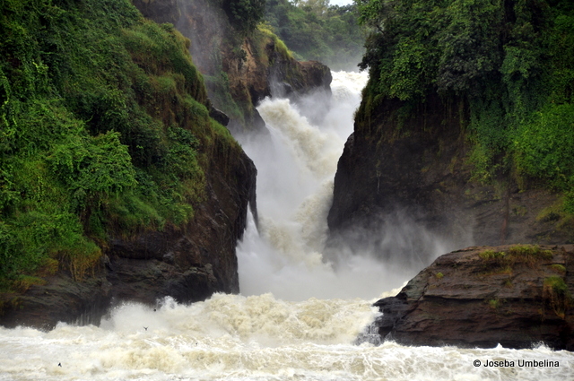 Visitamos también las cataratas que dan nombre el parque, las Murchison Falls del río Nilo. Nos acercamos hasta ellas navegando por el río y luego hicimos una caminata hasta llegar a la parte de arriba. Desde allí pudimos comprobar la gran fuerza con la que caía el agua en un espacio muy estrecho, algo que impacta bastante.
