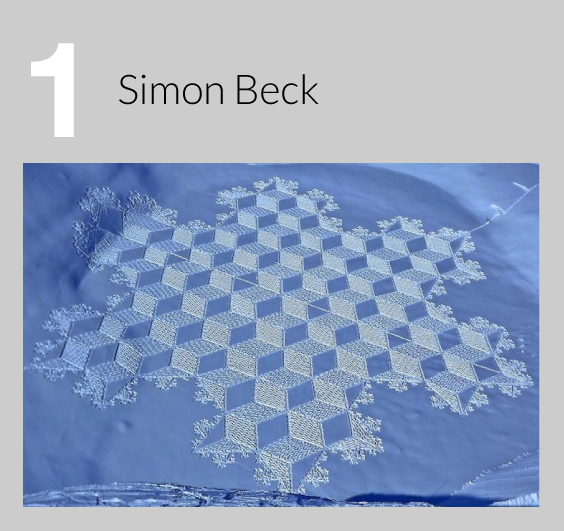 ¿Cómo no admirar a un hombre que camina todo el día para crear patrones increíbles sobre la nieve? El artista Simon Beck soporta el frío, y sin duda, su dolor de piernas, para crear estas maravillosas obras de arte que son normalmente del tamaño de tres campos de fútbol. Con raquetas de nieve, trabaja 5-9 horas al día para crear complejas formas geométricas.