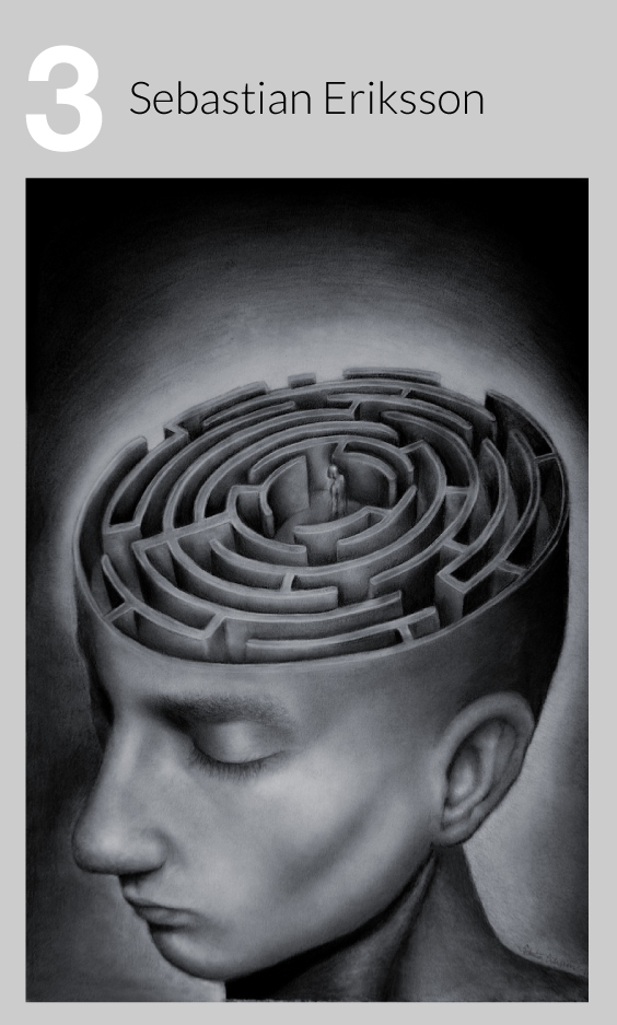 El artista de 18 años de edad, Sebastian Eriksson sabe cómo plasmarlo todo. Sus dibujos a lápiz surrealistas no sólo son intrigantes, a menudo tienen un significado profundo y personal. Por ejemplo, en su pieza titulada Perdido en el Pensamiento, dice, “Un día me sentí como si estuviera perdido y yo tenía demasiadas cosas en qué pensar. Como si estuviera atrapado en un laberinto del que no podía salir.”