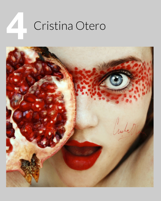 Con 16 años de edad, la fotógrafa española Cristina Otero saltó la escena con sus increíblemente “deliciosos” autorretratos de la serie llamada Tuttii Frutti. Usando atrevidos maquillajes, la artista autodidacta pinta su cara con colores brillantes, hasta que coincida con su fruto deseado. Su voluntad de experimentar y su valentía para compartir sus retratos únicos con el mundo, la convierte en una fotógrafa a seguir.