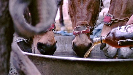 Cerca de la frontera entre Irán e Irak, donde subsiste la economía de contrabando, para que las mulas no sientan frío y puedan subir sin problemas las montañas heladas, los pastores les dan de beber vodka. Este es el título de una película kurda-iraní de Bahman Ghobadi: «A Time for Drunken Horses» o Un tiempo para caballos borrachos.