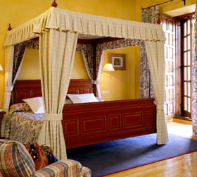 Llegué aquella noche casi de madrugada y sin reserva. No se preocupe -Me dice el tío-. Está completo pero le daremos una habitacioncita de urgencia. Resultó una preciosa y coqueta habitación abuhardillada en la que no faltó ni la fruta fresca, ni la botella de cava helado cuando entramos, el silencio absoluto, el colchón perfecto… Me encantó dormir protegido por el fantasma del palacete porque además llevaba a mi amor en el viaje. Luego el desayuno, en la cama para reponer las fuerzas y proseguir con los versos en los cuerpos y a su hora nos levantamos a comer y casi dije: ¡todo!, como el protagonista de una de las historias de “el sentido de la vida” de los Monty Python, cuando el maître me sugirió algunos melindres de la carta.