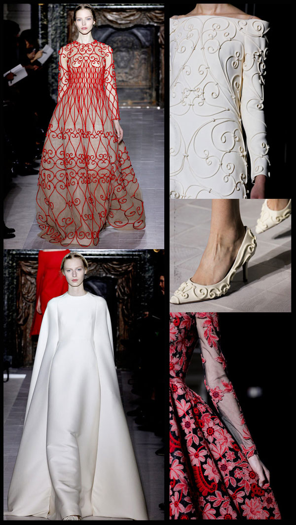 Y llegó Valentino, y la semana cobró más sentido. Maria Grazia Chiuri y Pierpaolo Piccioli quisieron mostrar el encanto de lo artesanal. Y es que como expresa Chiuri: «La alta costura debe ser mágica» , con esta premisa surge la seducción sin olvidar las horas de intenso trabajo. Los diseñadores hicieron hincapié en sus notas lo que se esconde tras esta laboriosa tarea. También estuvo presente la naturaleza en esta colección mediante filigranas en los bordados, delicados encajes y organzas pintadas a mano. Espectaculares capas que cubrían vestidos de ensueño a modo de jaula. La pareja no se recreó en los estampados, aunque no faltaron los motivos florales, pero hubo lugar para vestidos limpios con estructuras más rígidas con capas añadidas. Los largos competían con delicadas faldas evasé, las sutiles transparencias daban ligereza a ciertos vestidos y los zapatos iban en perfecta consonancia con el look como un efecto camaleónico. No falló el carismático rojo, que muchos incluyen en sus colecciones, pero que en Valentino tiene otro cariz.