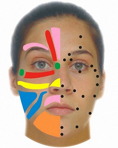 En el rostro humano existe un mapa de reflexología con más de 500 puntos diferentes que se utilizan con la acupuntura facial.