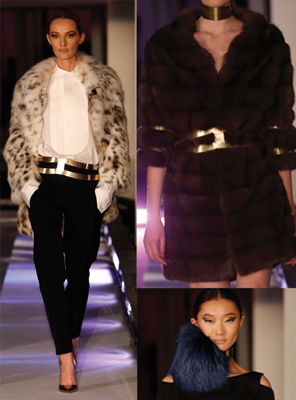 Como de costumbre maestría de volúmenes, corte militar en abrigos y chaquetas, que pasan por tejidos con esencia futurista, sedas, paños de lana, brocados y la compañía del visón y zorro en las pieles de Santiago del Palacio marcadas por cinturones y piezas de metal que potenciaba las formas de la figura femenina.
