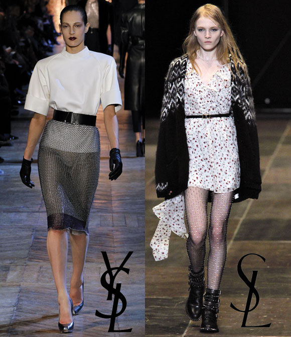 Ha pasado una temporada entre estas dos imágenes. Y la diferencia es tan obvia que da miedo. Ayer cerró la jornada Hedi Slimane y su Saint Laurent. Y no veo por ninguna parte la esencia de la mujer Yves Saint Laurent, debe haberse marchado con el Yves…