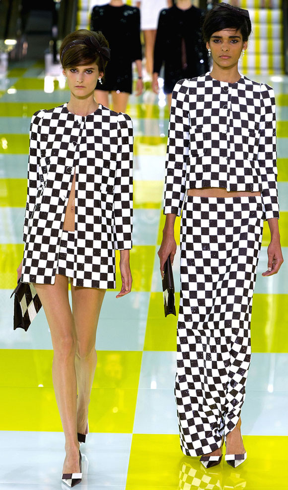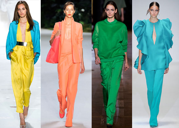 Se apuesta por el binomio blanco y negro, como punto fuerte y realizable en combinaciones y estampados como el damero. Que queda como estrella impuesta por Louis Vuitton que lo lleva más allá utilizando uno de los colores fetiches de esta primavera: el amarillo. Si hablamos de colores, al del astro, habría que añadirle el verde, en varias de sus tonalidades pero sobre todo, el esmeralda que parece ser el encargado de sustituir a ese que bautizaron mint el año pasado. El celeste ( ahora azul bebé ) será el tono pastel a elegir y el turquesa viene pisando fuerte porque a parte de prendas de noche, querrás unos zapatos de este tono. Aunque cualquier color fuerte y vivo resultará apetecible en combinaciones de intensidad cromática para quien sepa hacerlo y total looks del mismo color para quien se atreva.