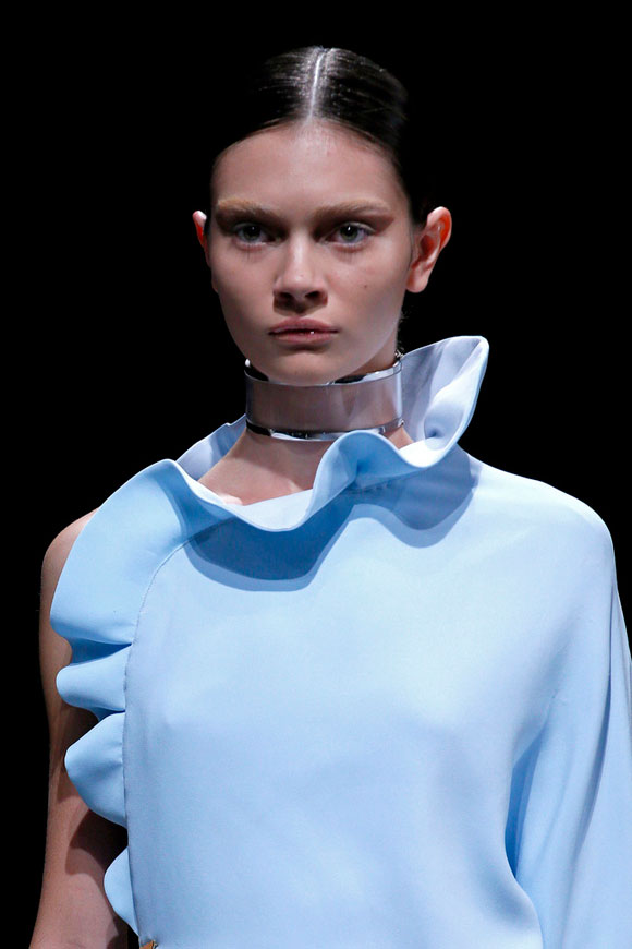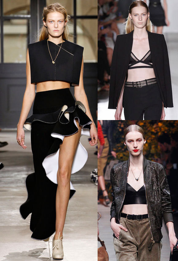 Los volantes: Esas ondas que dan forma a esta temporada, alegrando las siluetas en mangas, escotes y faldas. Así se despidió Ghesquière de Balenciaga y hay que darle una oportunidad a estas elegantes líneas sinuosas. También pudimos ver en ese desfile otra prenda que quiere abrirse paso: el top. Mejor combinado con cinturas altas y buen estado de forma. Esta sensual pieza también viene para esconderse bajo blazers o chaquetas de corte masculino como contraste.