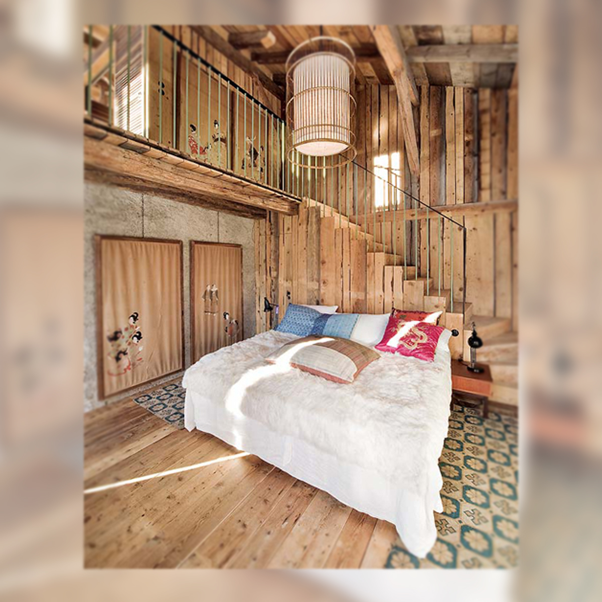 Desde el exterior mantiene su antiguo encanto exceptuando vanos y ventanas. El interior es el perfecto maridaje entre antigüedad y modernidad. Muebles de diseño que conviven en perfecta armonía con tesoros encontrados en mercadillos vintage o brocante, con un ambiente cálido y natural donde predomina la madera bruta salpicada de divertidos detalles y texturas de aires hippie, étnicos y bohemios.