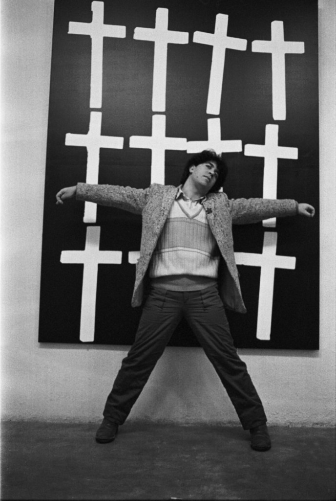 Javier Porto. Almodóvar y cruces. De la serie “La noche se mueve”, 1982. Fotografía s/papel.