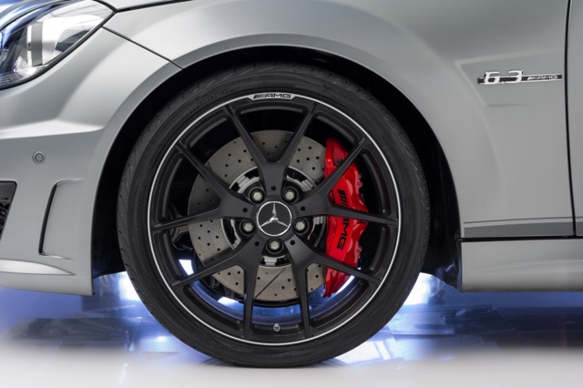 El C 63 AMG «Edition 507» cuenta de serie con un equipo de frenos AMG de alto rendimiento con discos de material compuesto de eficacia aún mayor. En el eje delantero se montan discos de material compuesto de 360 x 36 milímetros. Entre las ventajas de esta técnica se cuentan su mayor resistencia y la menor deformación térmica de los discos de freno. Por otra parte, los discos de material compuesto son más ligeros; las menores masas no suspendidas redundan en una mejor respuesta de los elementos de la suspension / amortiguación.