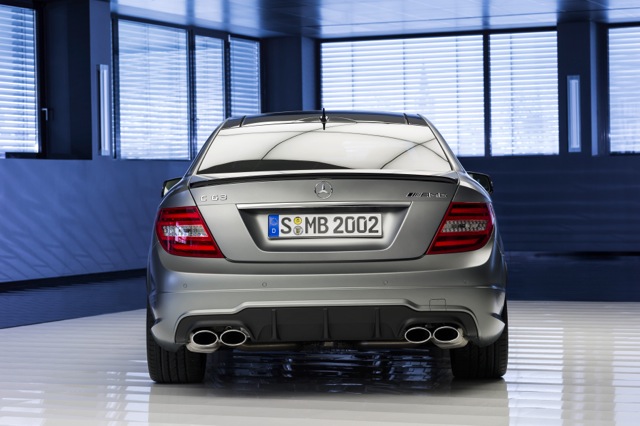 el coupé), la carcasa de los retrovisores exteriores y los engarces de la parrilla del radiador y de las luces diurnas están ejecutados en negro brillante. Los faros oscurecidos ponen una nota netamente deportiva. Como equipo opcional se puede elegir la pintura exterior designo platino magno en exclusiva para el C 63 AMG «Edition 507».
