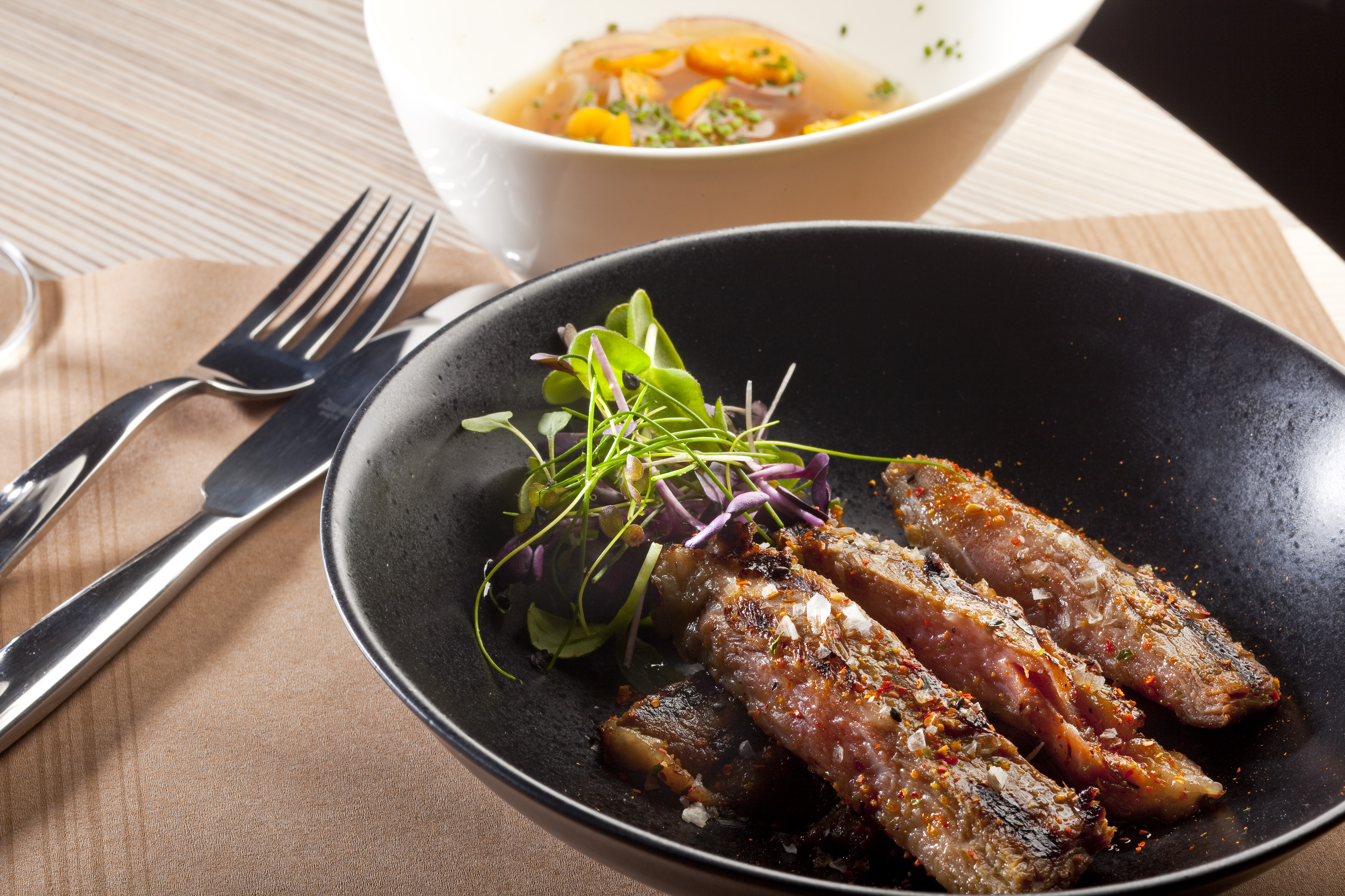 Y como los tiempos cambian y hay que reinventarse, el suyo es un buen ejemplo. Iñaki dice que él no es un hombre de espumas, que no se le dan bien, y que ha querido abrir “un buen sitio, para comer bueno y barato”. Y, como ahora tiene una cuñada japonesa, la innovación en su cocina aparece en platos como el sushi de pato, que sirve con la salsa yusu del tradicional Pato Pekín pero añade sabiamente una reducción de mango y una mahonesa de wasabi. También es innovador su tiradito de pez mantequilla con flores y escamas ahumadas de bonito, tan etéreo como sabroso.