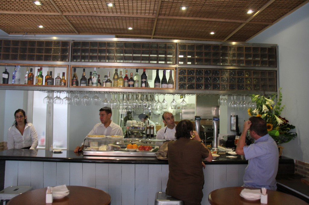 En septiembre, cuando abrió con lo necesario y sin grandes despliegues mediáticos, la clientela que entraba lo hacía sólo porque otras tabernas vecinas estaban llenas. Pocos meses después se han hecho un hueco en el circuito de novedades interesantes, de las que merecen que les vaya bien. Ahora tiene su clientela y sigue sumando fieles. A los vecinos de la zona, a mí me llevó uno de ellos, les gusta comer bien y tienen dónde elegir, pero son exigentes. En Marcano entras y ves que el comensal ya es familiar porque siempre ofrecen un plato del día, generalmente legumbres y un menú muy completo a mediodía, además de una carta corta pero perfecta que cambian con frecuencia.