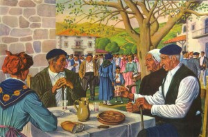 Mauricio Flores Kaperotxipi (1901-1997): “Merienda en la fiesta del pueblo”. Su pintura recrea esencialmente los tipos y costumbres rurales del País Vasco.