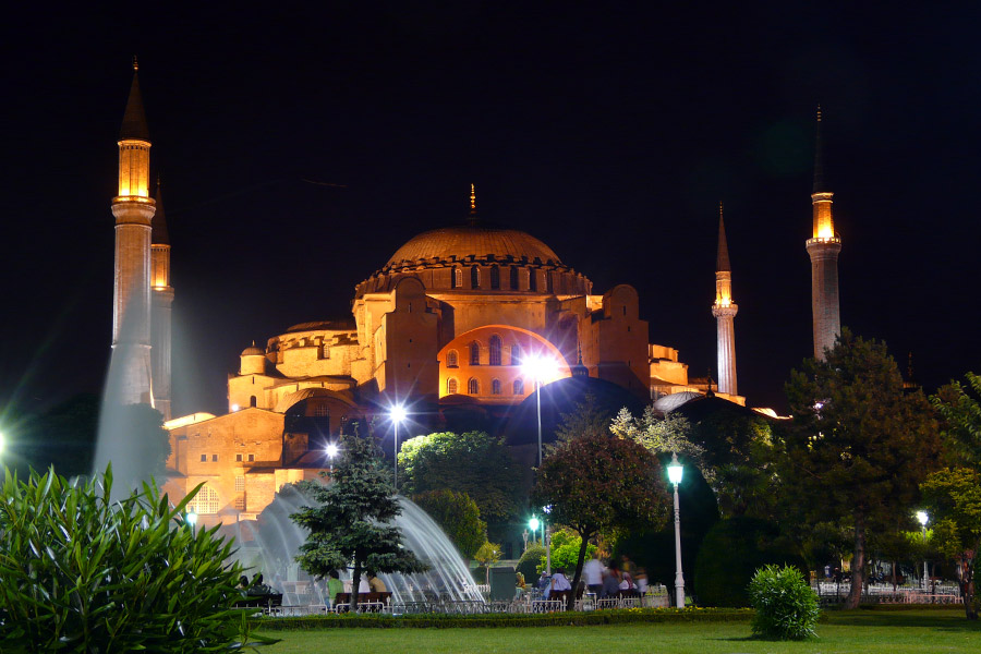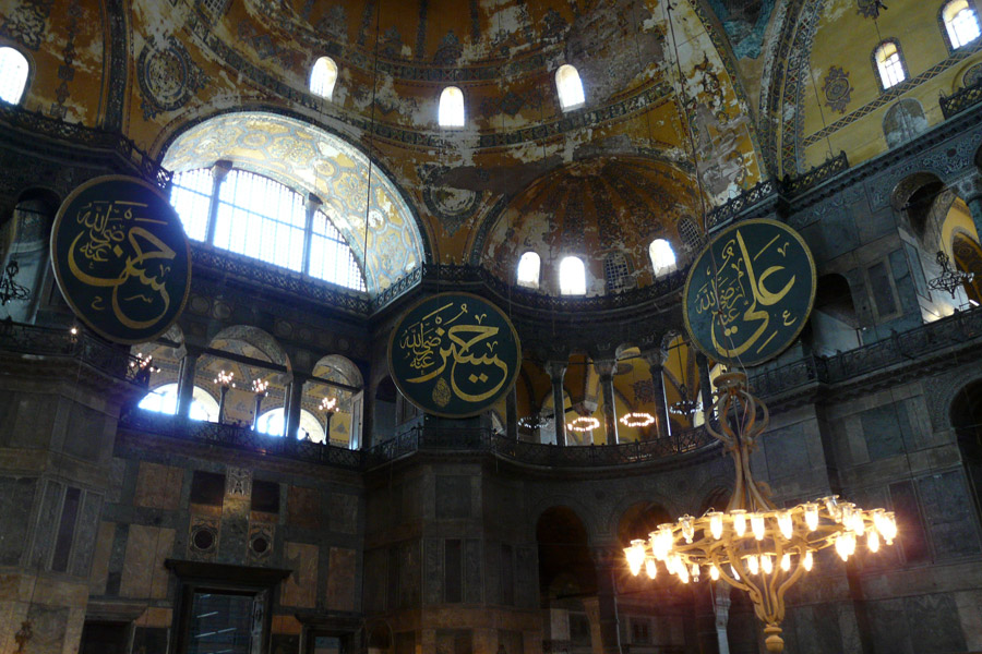 Tras la ocupación otomana de la ciudad, en 1453, la iglesia fue reconvertida en mezquita (de este periodo datan los cuatro minaretes y los contrafuertes exteriores) y sirvió como modelo para la realización de muchas otras, como la Mezquita Azul (1609-17), también en Estambul. Desde 1935 se ha utilizado como museo.
