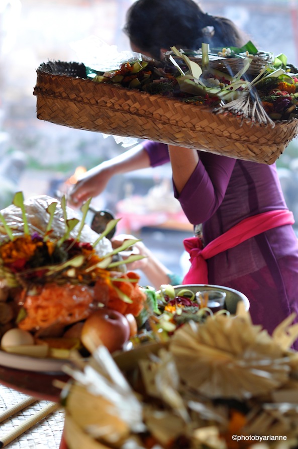 Algunas diferencias son menos perceptibles. Por ejemplo la estructura familiar: ellos viven en los llamados “Kompong” o casas tradicionales, donde se juntan hasta 4 generaciones bajo un mismo techo; en nuestro caso abundan las casas “mono-familiares”, bueno para el que puede, claro. O las costumbres festivas: en Bali reciben el año nuevo con 24horas del más riguroso y absoluto silencio y ayuno (hasta el aeropuerto cierra); nosotros los españolitos “entre gritos y pitos” como dice la canción. O las ceremonias religiosas: nosotros una vez al año que no hace daño y algunas fiestas de guardar; ellos cada luna nueva y llena, cada ocasión especial, si hay mal augurio, si te cambias de casa, si los Dioses se enfadan, si cumples 3 meses, o sencillamente 3 veces al día antes o después de cada comida.