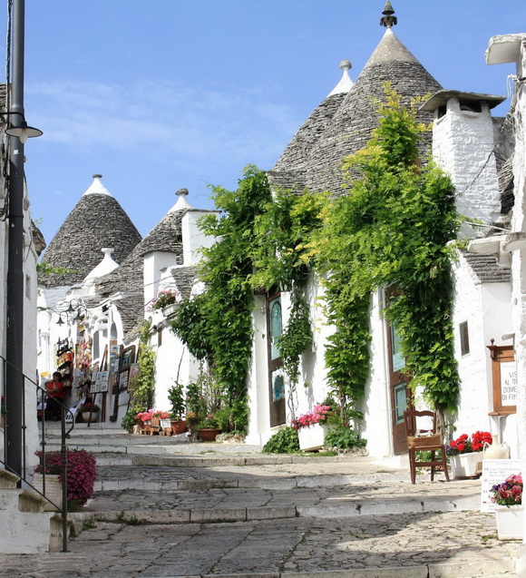 Albertobello es una ciudad de la provincia de Bari, Puglia, famosa por su colección de trullos, unas construcciones tradicionales realizadas con piedra en seco que sólo se encuentran en el valle de Itria. Aunque hay muchos trullos dispersados por esta región, Albertobello posee la colección más grande de edificios originales, muchos de los cuales aún están habitados. Además, ha sido nombrado Patrimonio de la Humanidad por la UNESCO. Esta es sólo una de las muchas calles populares entre los turistas para pasear en Albertobello.