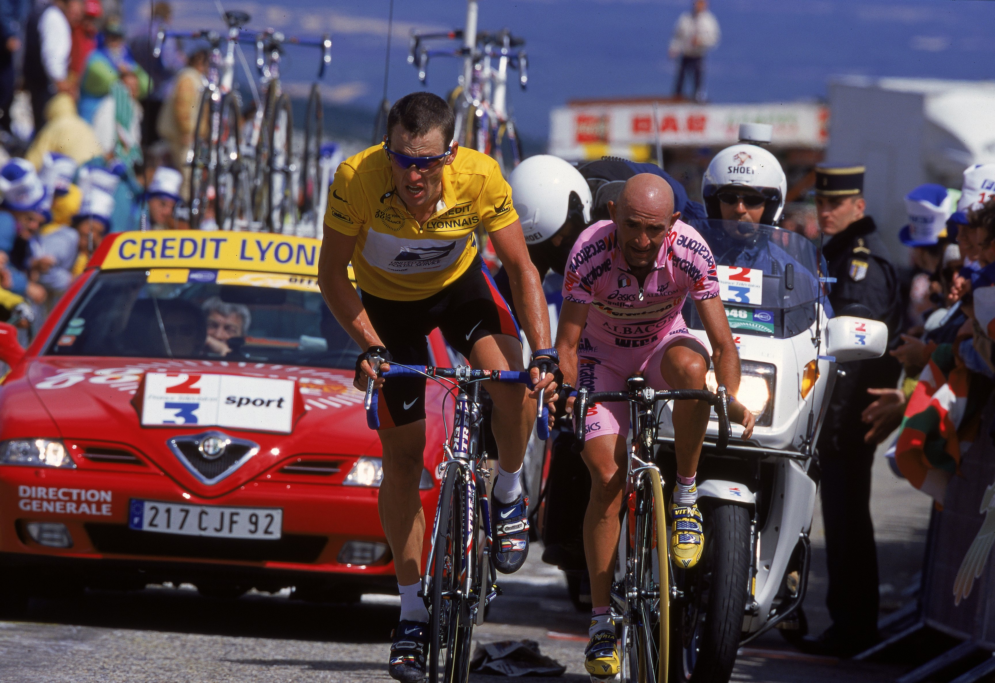 En el comienzo de la ronda gala, Jan Ullrich dejó al italiano a cinco minutos tras una contrarreloj en la que no dio opción a réplica, aunque la diferencia no le sirvió de mucho a la hora de escalar.