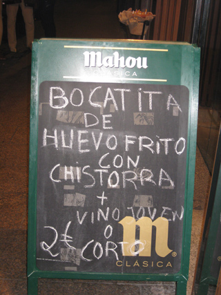 Especialidades Jamón serrano, bocatitas de chorizo, calle San Juan