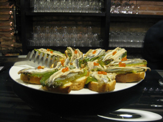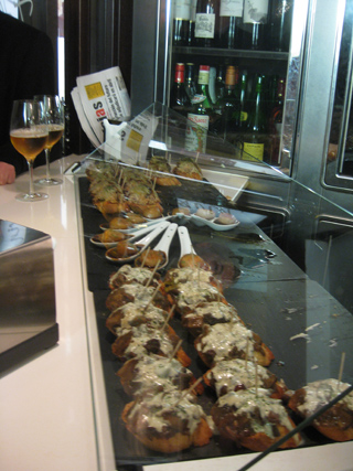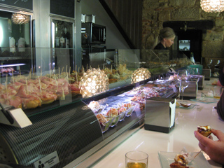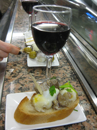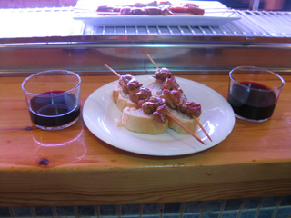 Calle San juan restaurante Tastavin de Autor, tapas en la misma linea, dos vinos marca dos pinchos 7.80, no nos convencio, demasiado.