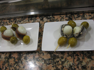 | Travesía San Juan | Mere | Pimientos verdes rellenos de gambas Anchoas rellenas de jamón y pimiento verde Bonito Bocadillo de tortilla de patata |