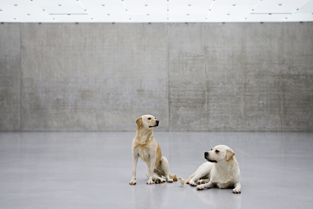 Por su parte, Maurizio Cattelan introduce con frecuencia en su trabajo indicios de vida que suelen estar excluidos del espacio artístico. Por ejemplo, Sin título (2007) muestra a dos perros disecados que vigilan a un pollito y que parecen representar la idea barroca de que la vitalidad también puede ser indicador de la precariedad de la vida, de su naturaleza frágil y efímera.