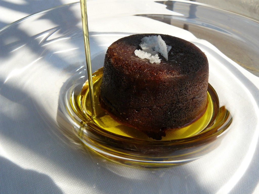 Hay que probarlo todo: como aperitivo nos sirven un gazpacho de fresas que también preparan con cerezas, pero el maitre nos confiesa que la acidez de la fresa es más adecuada. Lo sirven en una pizarra con un buñuelo de bacalao rico y distinto, muy suave.