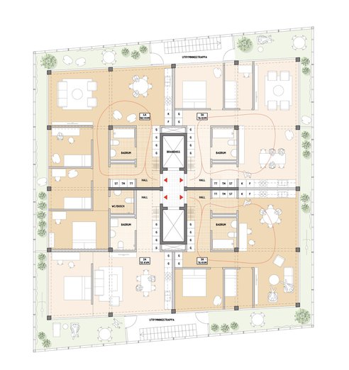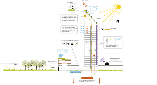 El edificio de este proyecto, diseñado por el estudio de arquitectura CF Møller, tiene 34 plantas y está construido con pilares y vigas de madera, y una estructura nuclear de hormigón.