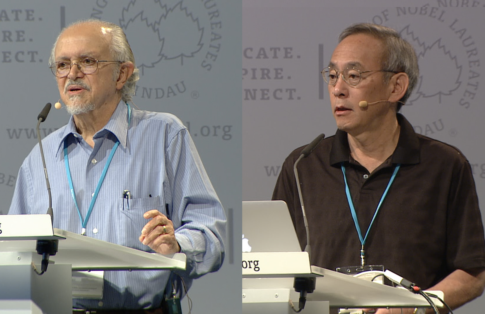 Steven Chu (derecha) y Mario Molina (izquierda) en la reunión de premios Nobel en Lindau / SINC