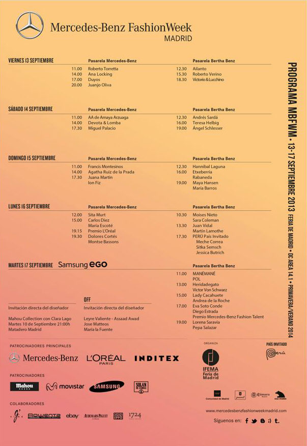 A destacar: La incorporación al calendario oficial de Juan Vidal, ganador del premio Who’s On Next de la revista Vogue, la vuelta de Carlos Díez y la ausencia de David Delfín.