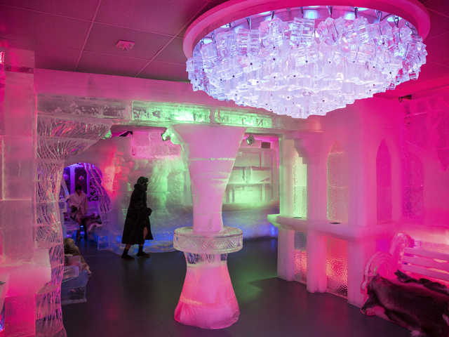 Paredes, lámparas, sillas, mesas, elementos decorativos e incluso los vasos y copas en los que se bebe están construidos a base de hielo canadiense puro tallado por diferentes artesanos, unas piezas efímeras que deben renovarse cada seis u ocho semanas.